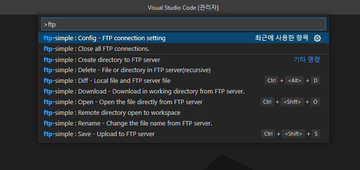 위와 같이 보이시면 ftp-simple : config - FTP connection setting 을 선택합니다.