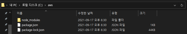 c:\aws 폴더에 아래와 같이 모듈이 설치되었습니다.