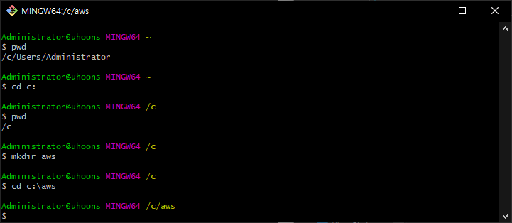 C:\aws 폴더를 만들고 이동하겠습니다.