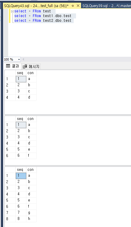 백업 혹은 복구 중인 데이터 베이스의 진행 상태나 진행률을 확인하는 SQL 입니다.